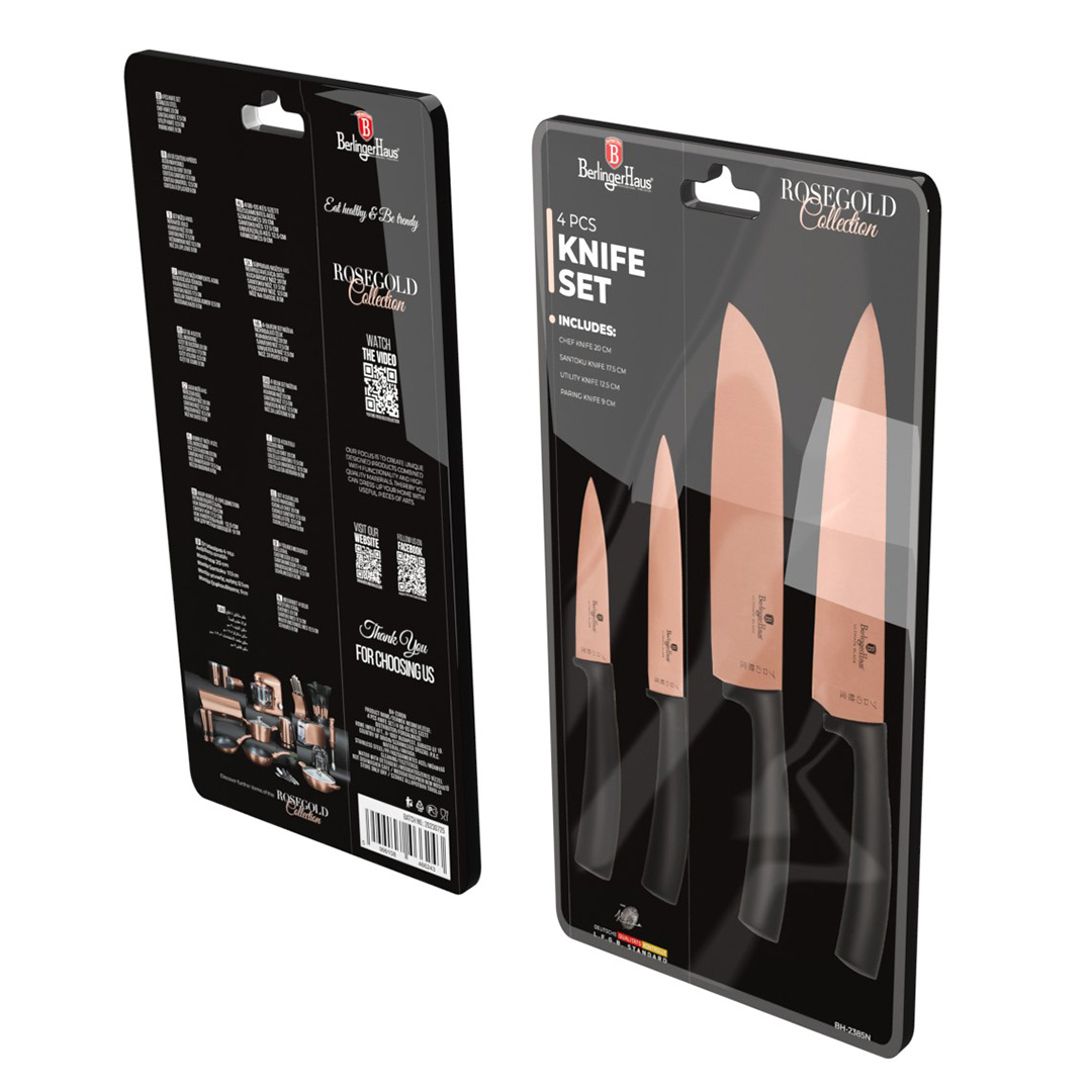 A Metallic Line Rose Gold Edition 4 részes késkészlet tökéletes választás azok számára, akik a mindennapi konyhai munkát stílusosan, mégis professzionális eszközökkel szeretnék végezni. A rose gold–fekete színkombináció modern, elegáns megjelenést ad a készletnek, miközben a funkcionalitás minden részletében a hatékony és biztonságos használatot szolgálja. Ez a késkészlet ideális alapfelszerelés otthoni konyhákba, ahol fontos a pontosság, a tartósság és az egységes dizájn.