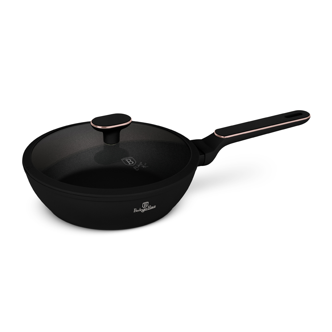 A Black Rose Collection mély serpenyő fedővel (24 cm) tökéletes választás mindennapi főzéshez, ha fontos számodra a praktikum, a tartósság és az elegáns megjelenés. A matt fekete–rose gold színkombináció modern és prémium hatást kölcsönöz, amely bármely konyhában jól mutat.
