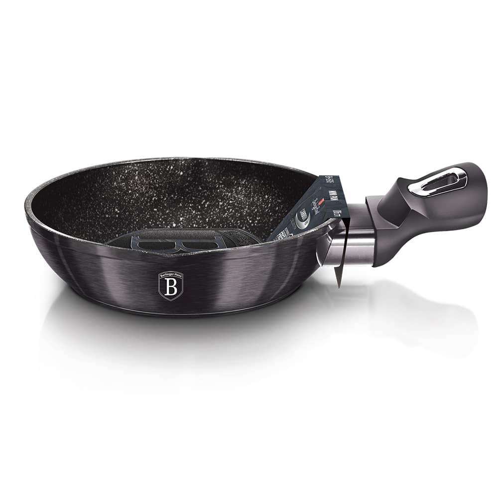 A serpenyő kovácsolt alumíniumból készült, amely biztosítja a tartósságot és a kiváló hővezetést, így az ételek egyenletesen sülnek meg.