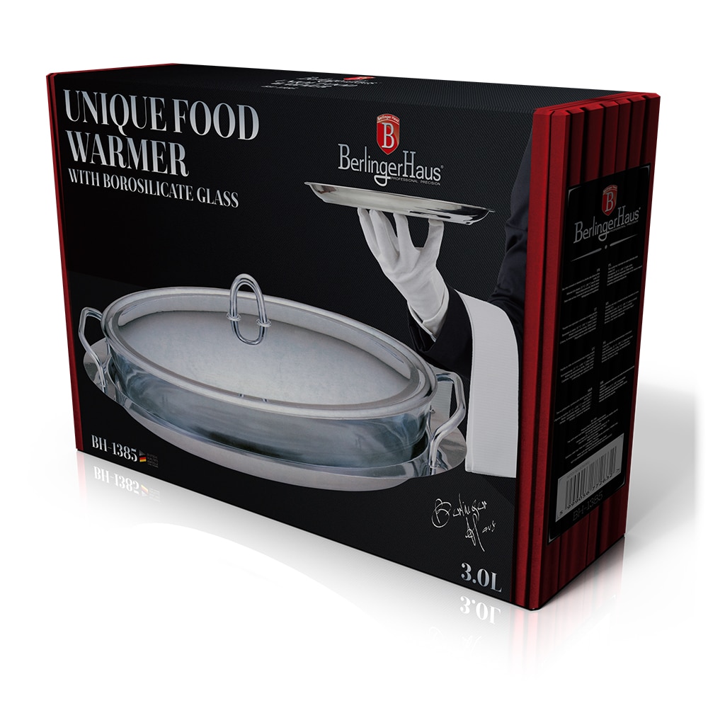 A tálaló rozsdamentes acélból és hőálló üvegből készült, amely biztosítja a tartósságot és a stílusos megjelenést. Az acél eleganciát kölcsönöz, míg az üveg lehetővé teszi az ételek látványos bemutatását.